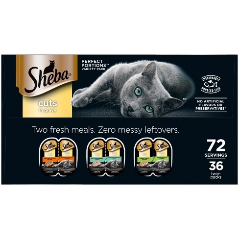 Sheba Perfect Portions Cuts In Gravy Sustainable Tuna Chicken Turkey Premium Wet Cat Food All Stages 2 6oz 36ct Variety Pack Target